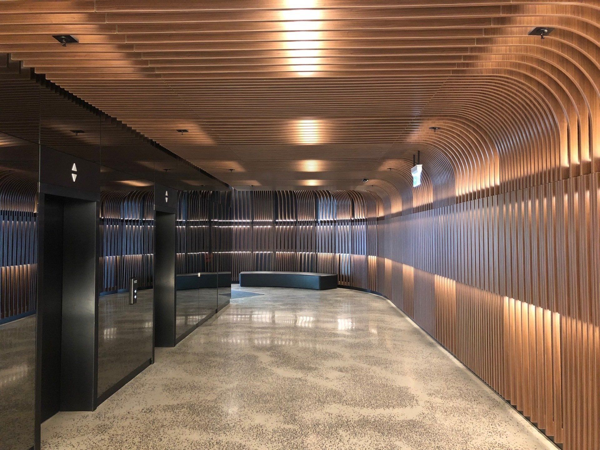 Key to the project is an undulating veil of timber ribs that curve around the interior and continue up and over the ceiling. Lighting and services are carefully concealed, allowing for the seamless transition of materials.